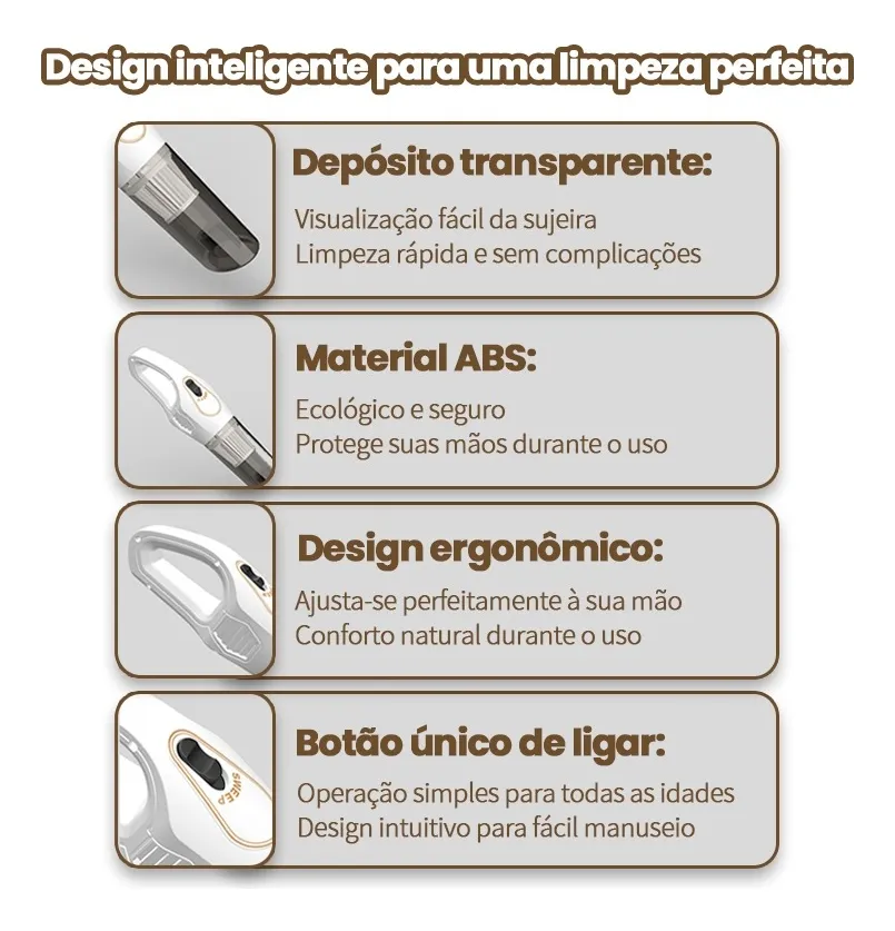 – Luz LED: Ilumina poeira escondida em cantos escuros